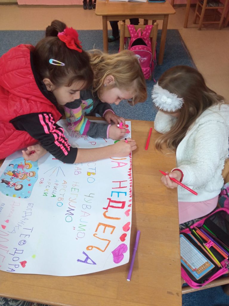 Поред тога, ученици су израђивали пригодне паное, а педагог школе Душка Тошић је ученицима прве тријаде одржала предавање у виду презентације о правима дјетета.