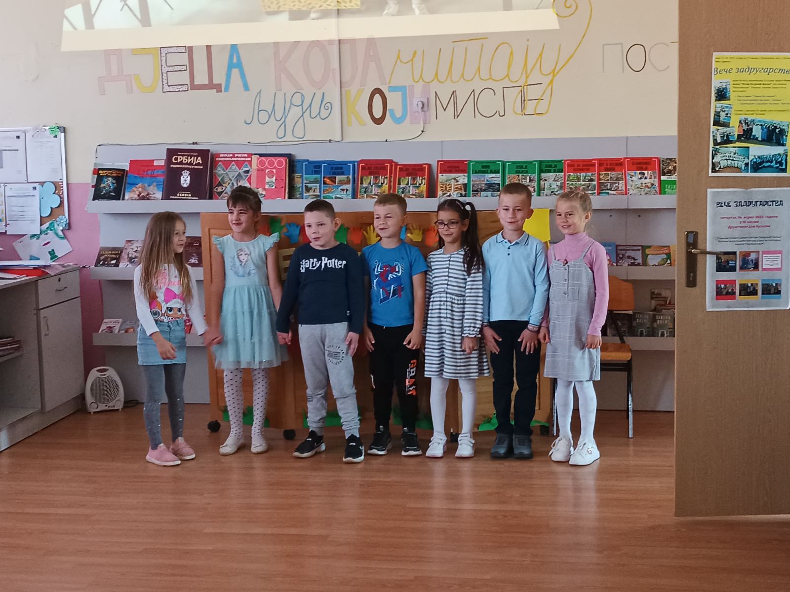 Ученици који похађају продужени боравак су уз помоћ другара из четвртог разреда овим поводом припремили пригодан програм приредбе за родитеље и школско особље. Пјесмом, плесом и глумом су нас на тренутак увели у свој – разигран и весео дјечији свијет.