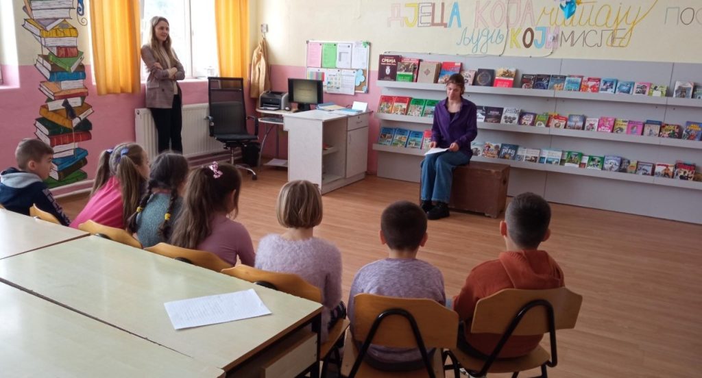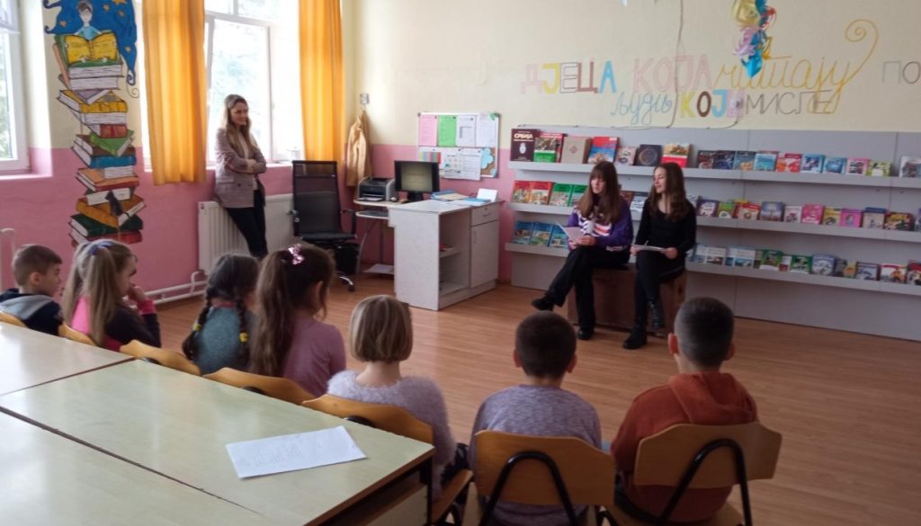 Овом приликом су ученици IX разреда нашим ђацима првацима читали пјесме великана српске дјечије књижевности.